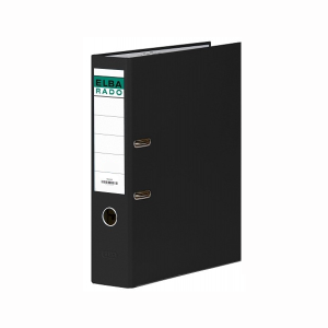Caja para archivador Elba A4 fabricado en cartón jaspeado negro.Dimensiones: 290x328x90